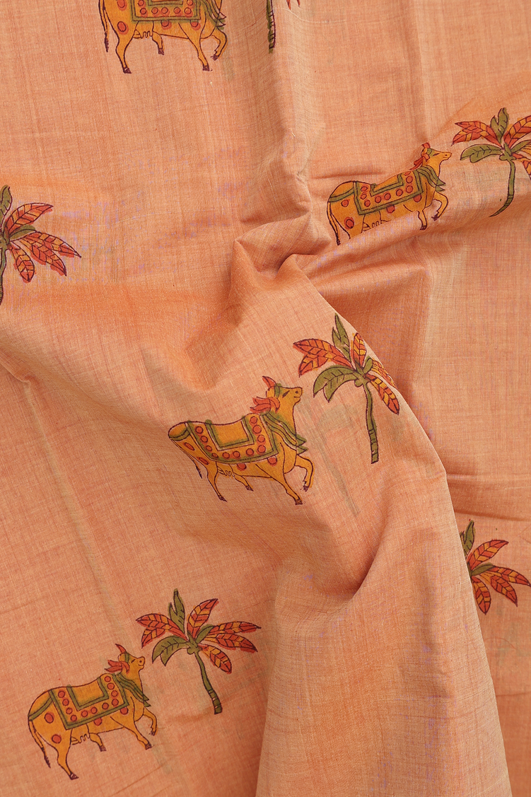 Mangalagiri Cotton Saree In Orange With Printed Design