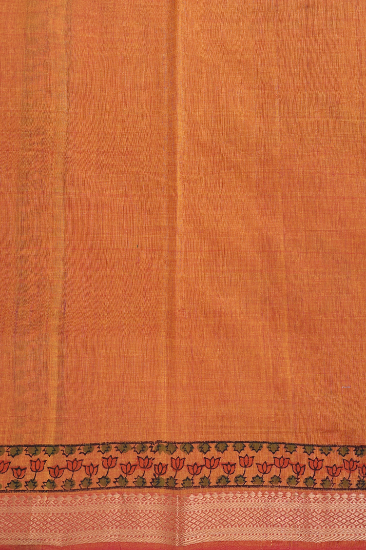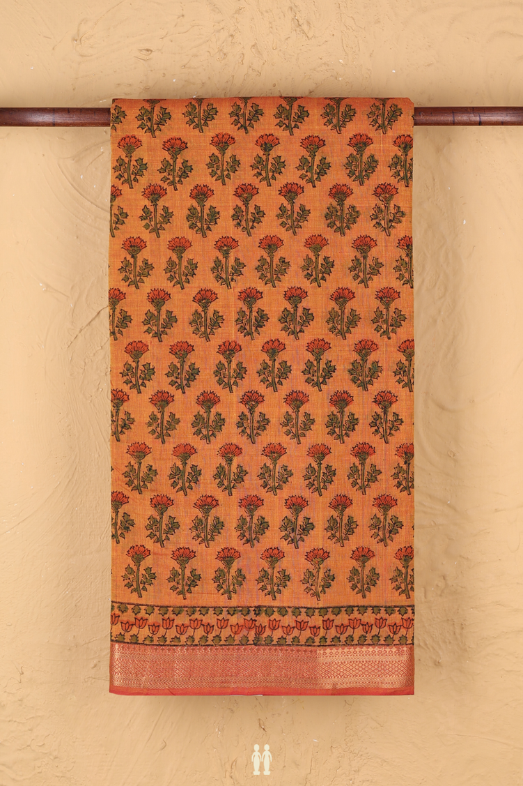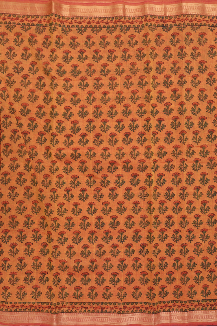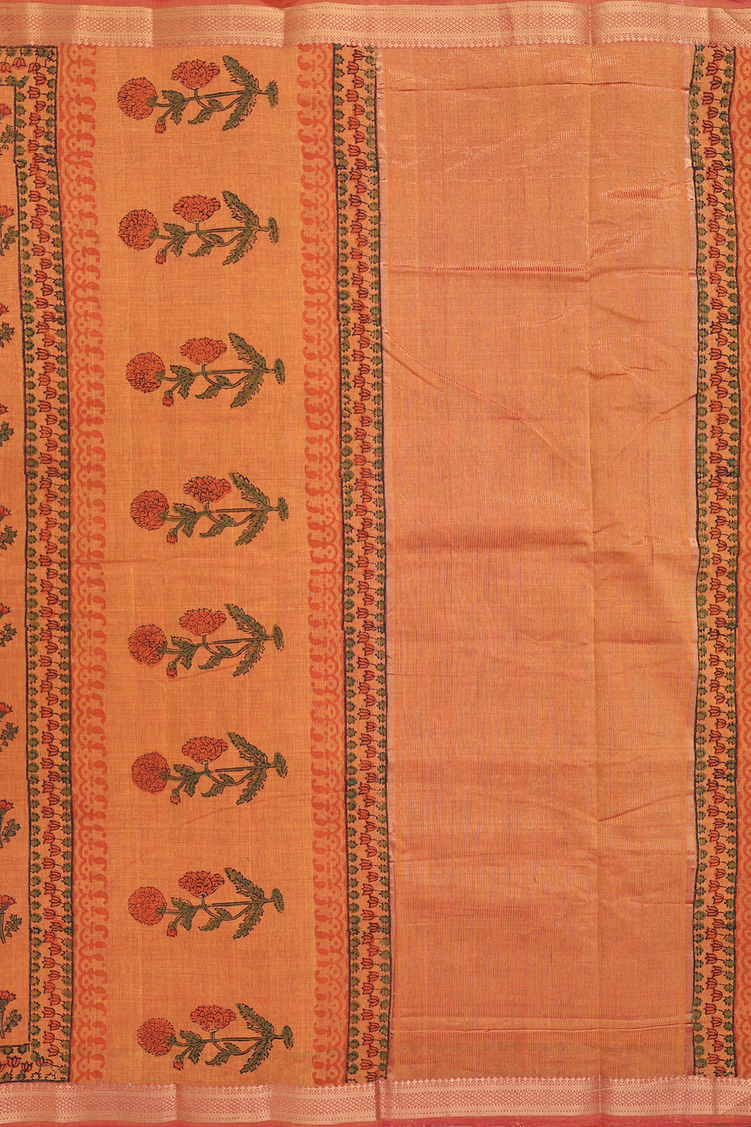 Mangalagiri Cotton Saree In Orange With Floral Printed Design