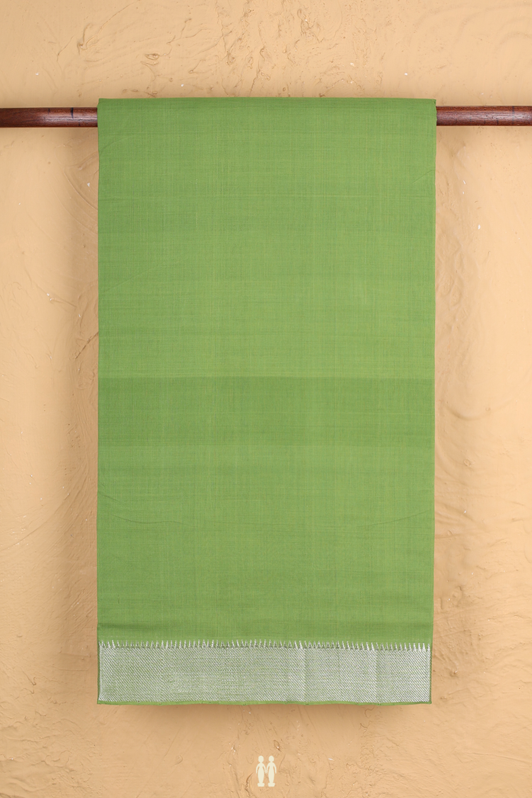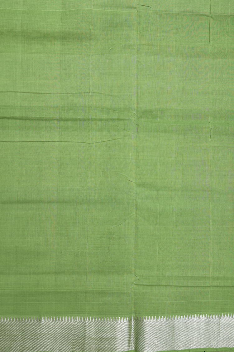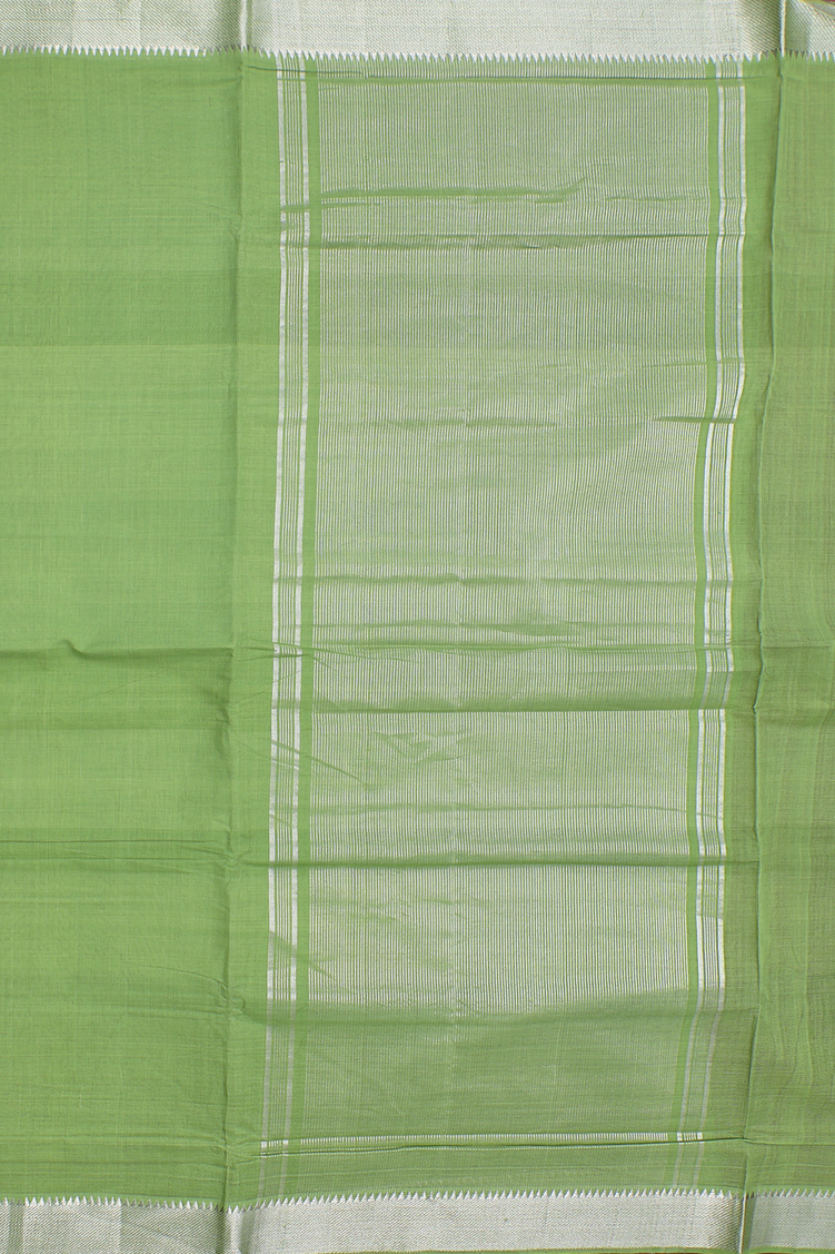 Mangalagiri Cotton Saree In Parrot Green With Zari Border