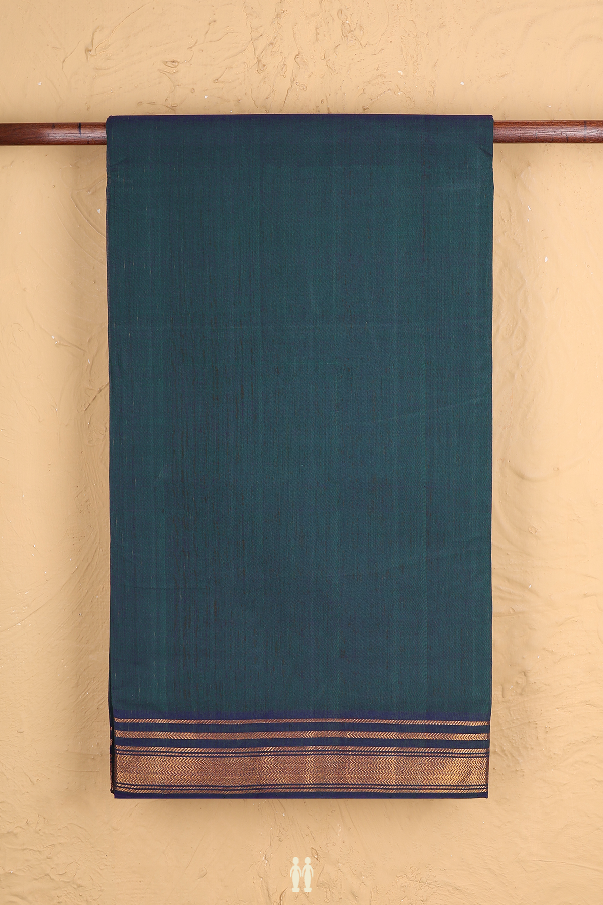 Mangalagiri Cotton Saree Midnight Green With Chevron Border