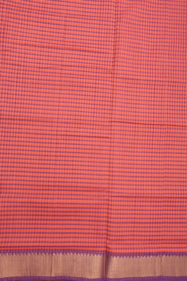 Mangalagiri Cotton Saree Orange And Purple With Stripes Design