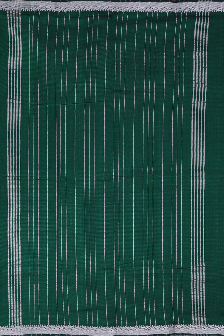 Mangalagiri Silk Cotton Saree Dark Green With Stripes Design