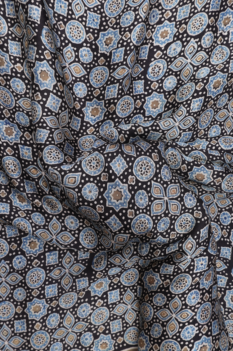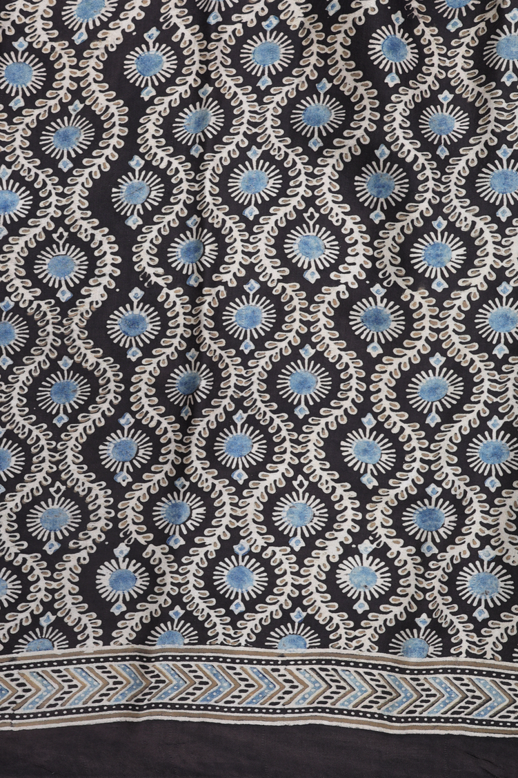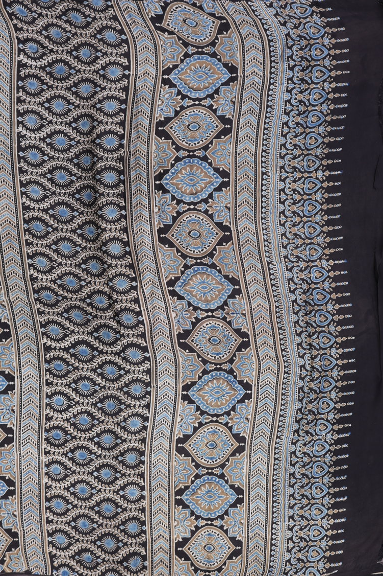 Exquisite modal silk saree in deep black, adorned with intricate allover patterns that create a mesmerizing visual texture. The luxurious blend offers exceptional drape and comfort while maintaining an air of refined elegance. Perfect for sophisticated occasions where subtle opulence makes a lasting impression.
