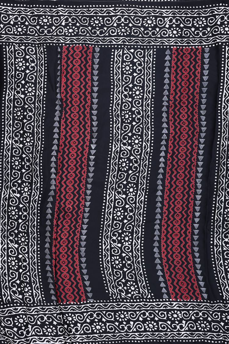 Elevate your elegance with this black modal silk saree featuring an exquisite printed design. The luxurious modal silk offers a smooth, lightweight drape that enhances comfort while adding a refined sheen. Perfect for sophisticated occasions, its timeless black hue paired with intricate prints makes a subtle yet striking statement. This saree effortlessly combines traditional charm with modern grace, ideal for those who appreciate understated luxury.