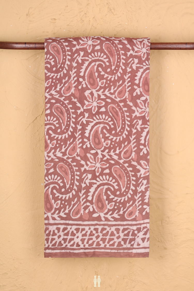 Modal Silk Saree In Cocoa Brown With Paisley Design