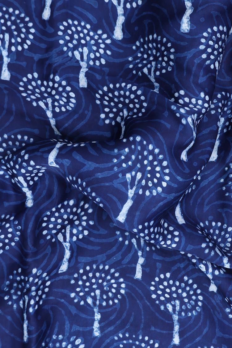 Modal Silk Saree In Oxford Blue With Printed Design