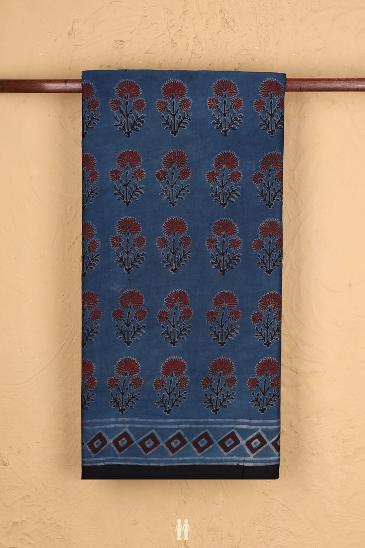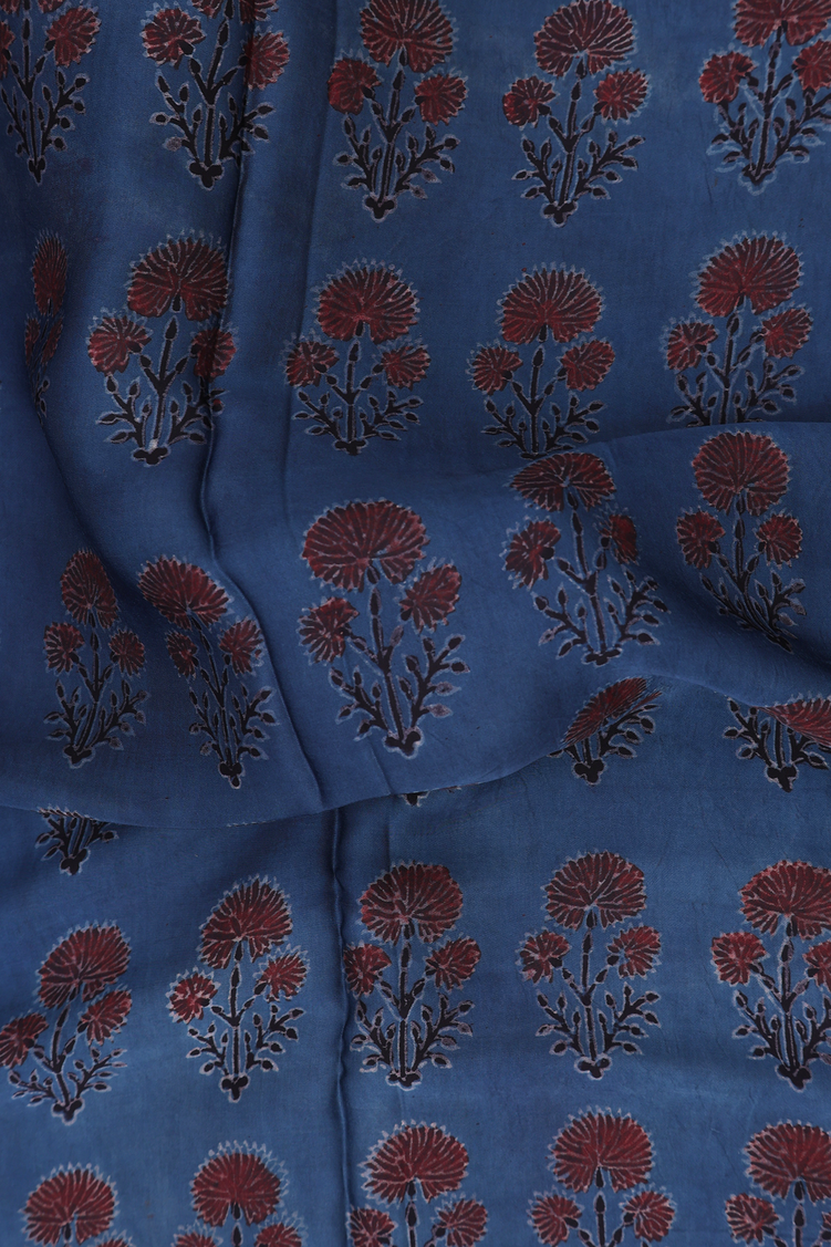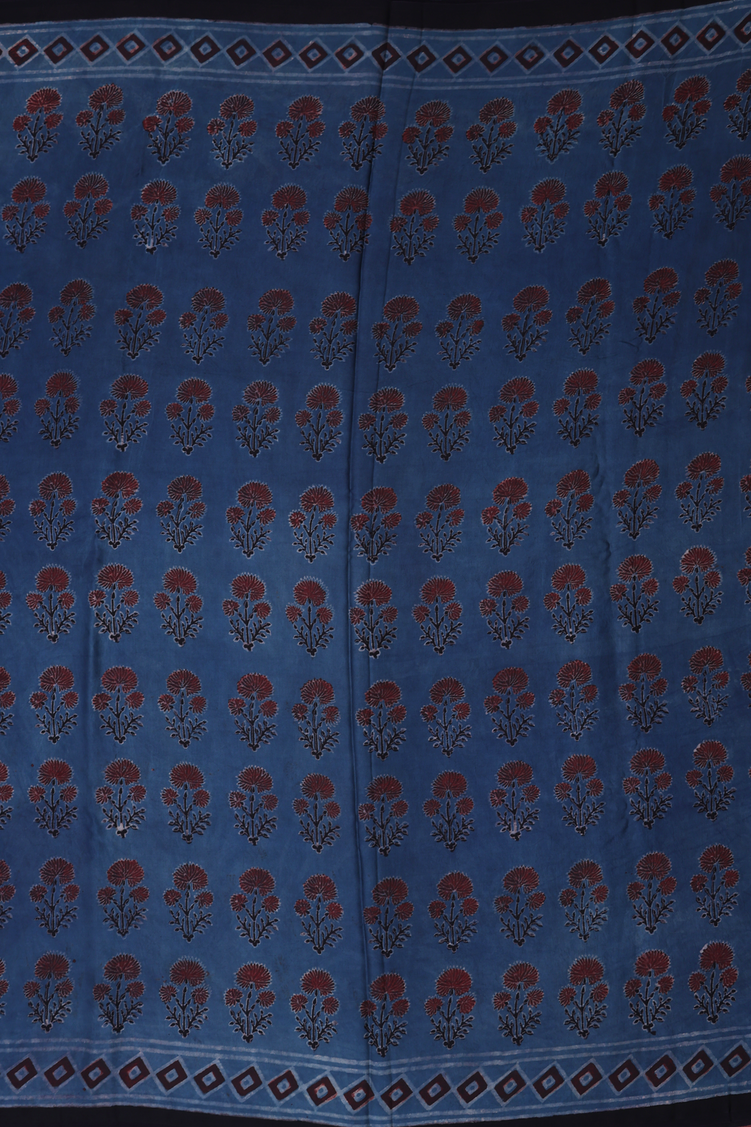 Modal Silk Saree In Prussian Blue With Floral Printed Design