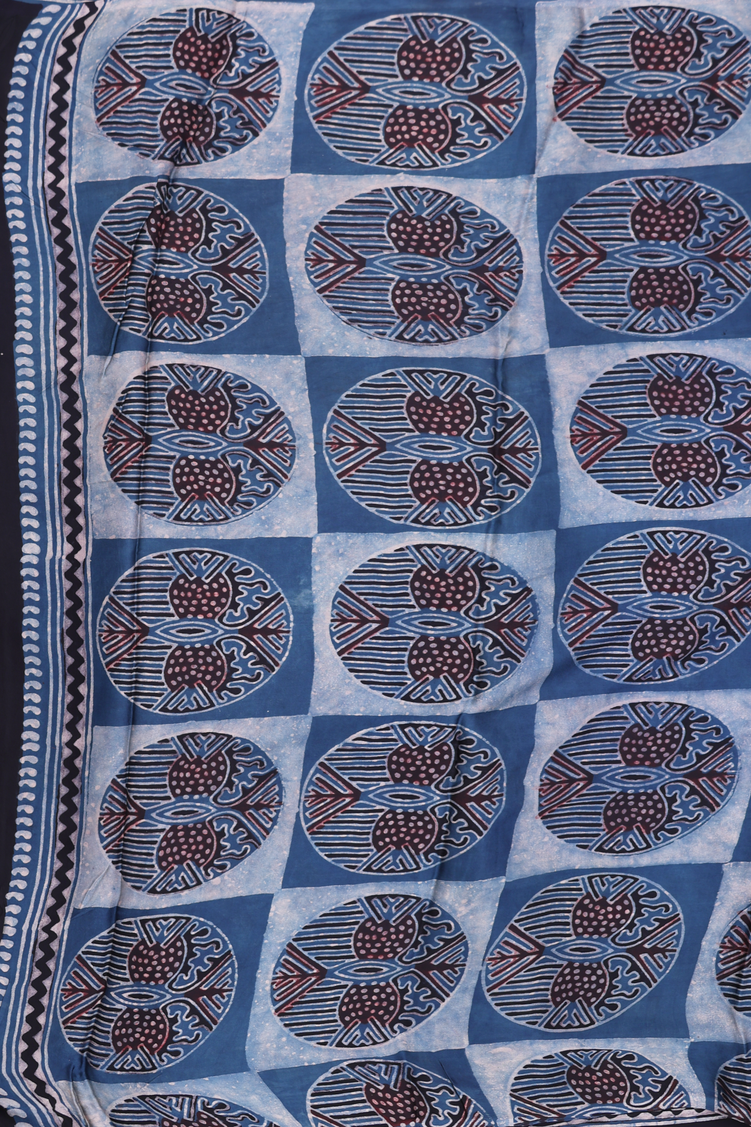 Modal Silk Saree In Prussian Blue With Floral Design