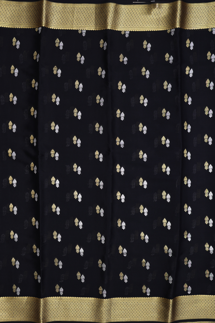 Elevate your elegance with this mysore silk saree in classic black, adorned with delicate floral buttas. Crafted from fine silk, it offers a smooth texture and subtle sheen that complements its intricate floral motifs. Perfect for graceful occasions, this saree blends traditional artistry with timeless sophistication, making it an essential addition to your refined wardrobe.