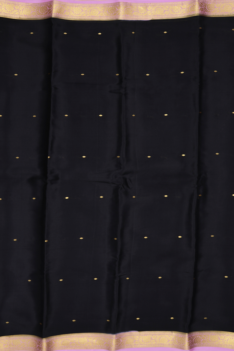 Mysore Silk Saree In Black With Zari Buttis