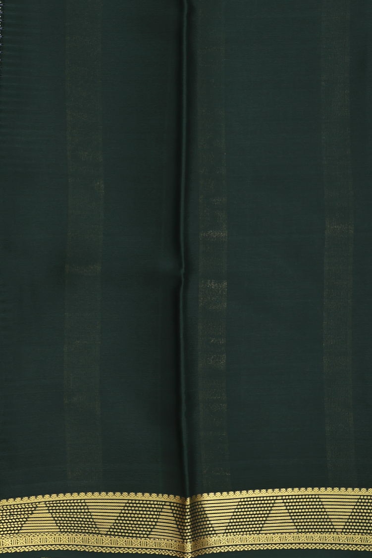 Elevate your ethnic wardrobe with this stunning Mysore silk saree in rich dark green. Crafted from premium Mysore silk, this saree showcases an exquisite zari border that adds timeless elegance and sophistication. The lustrous fabric drapes beautifully, making it perfect for weddings, festivals, and special occasions. The intricate zari detailing enhances the classic appeal, while the deep green hue complements all skin tones. A versatile piece that seamlessly blends traditional craftsmanship with refined style, ideal for those who appreciate authentic Indian textiles.