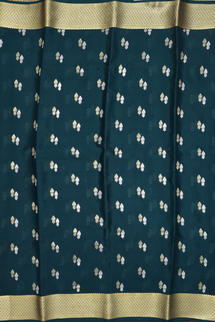 Mysore Silk Saree In Dark Green With Zari Buttas