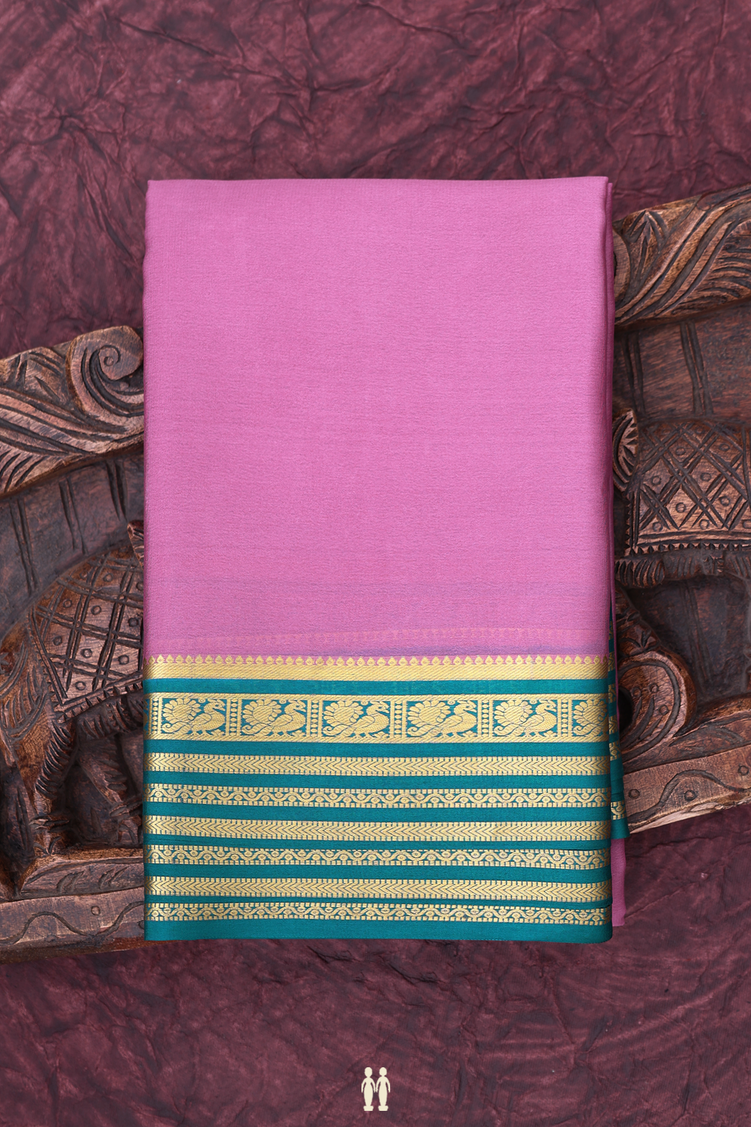 Mysore Silk Saree In Dusty Lavender With Contrast Border