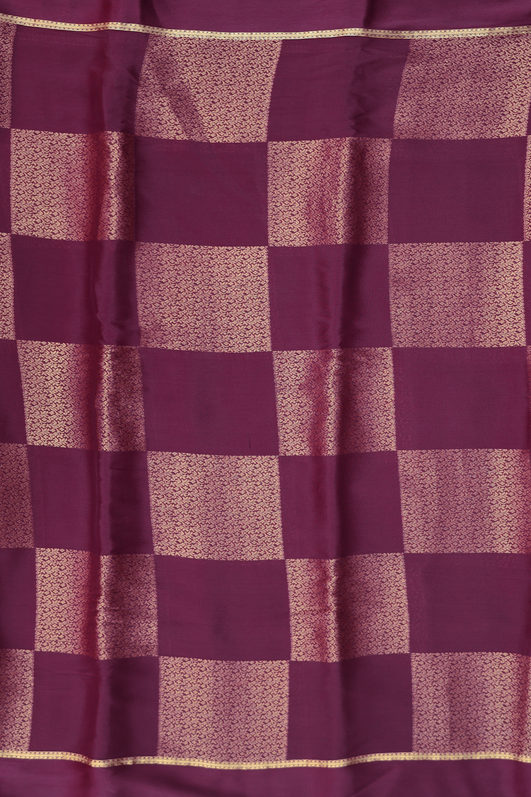 Elevate your ethnic wardrobe with this exquisite mysore silk saree, crafted in a rich grape purple hue. The refined checks design adds subtle texture and visual interest, making it versatile for both festive occasions and formal gatherings. Mysore silk's natural lustre and smooth drape create an effortlessly elegant silhouette, while its durability ensures this timeless piece remains a cherished addition to your collection for years to come.