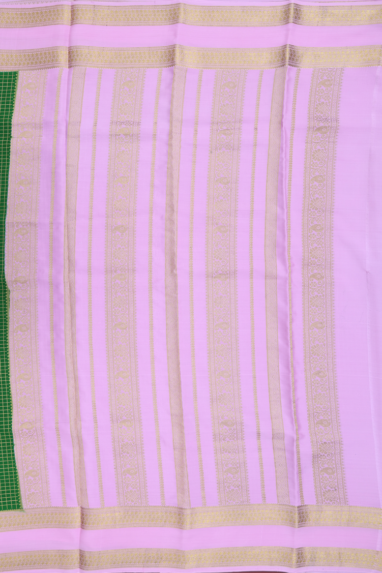 Elevate your ethnic wardrobe with this exquisite mysore silk saree in a serene leaf green hue, adorned with a refined checks design. Crafted from premium mysore silk, this saree drapes beautifully with a natural sheen that catches light gracefully. The geometric check pattern adds contemporary sophistication to traditional elegance, making it perfect for festive occasions, celebrations, or formal gatherings. The luxurious fabric ensures comfort throughout the day while maintaining its structured silhouette. A timeless piece that seamlessly blends classic craftsmanship with modern aesthetics, ideal for the discerning woman who appreciates quality and style.