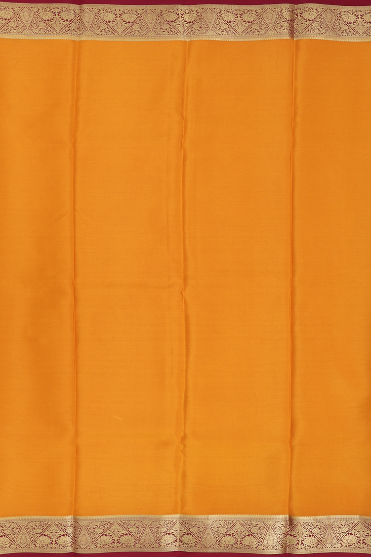 Mysore Silk Saree In Mustard Yellow With Contrast Border