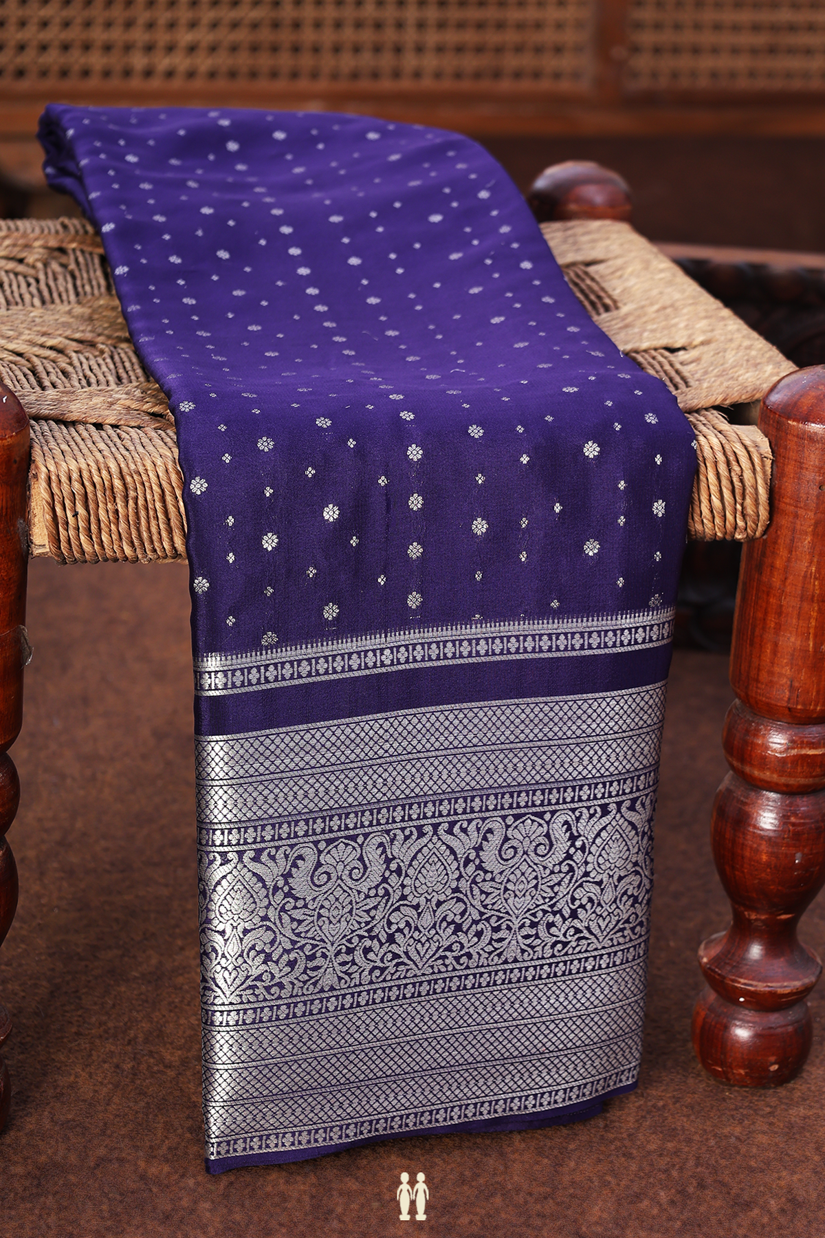 Mysore Silk Saree In Navy Blue With Floral Buttis
