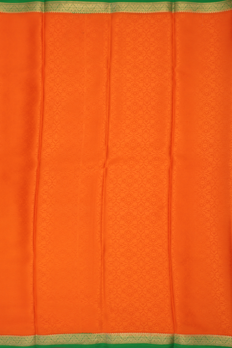 Mysore Silk Saree In Orange With Threadwork Design