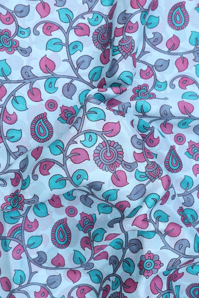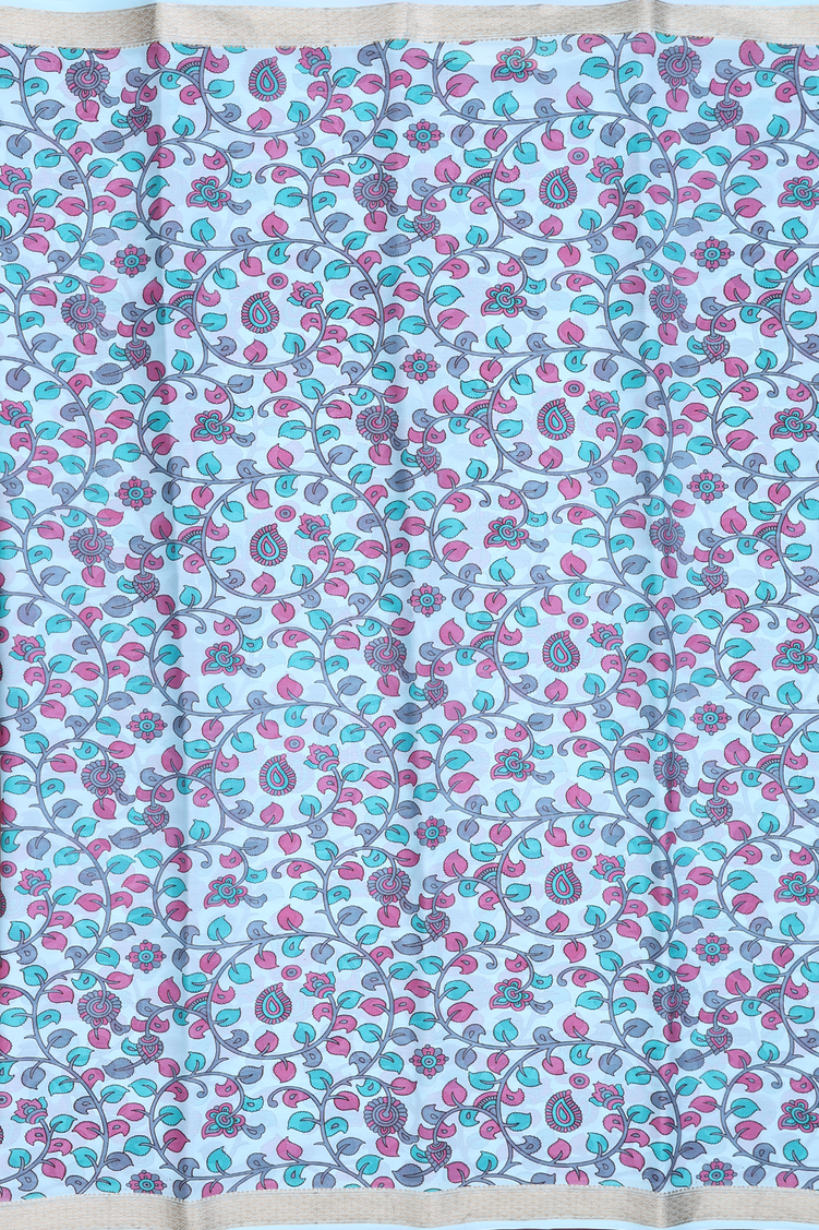 Mysore Silk Saree In Pastel Blue With Leaf Design