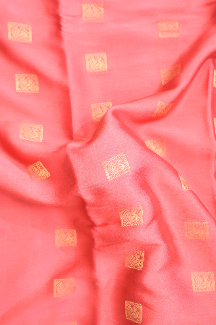 Mysore Silk Saree In Peach Pink With Zari Buttas