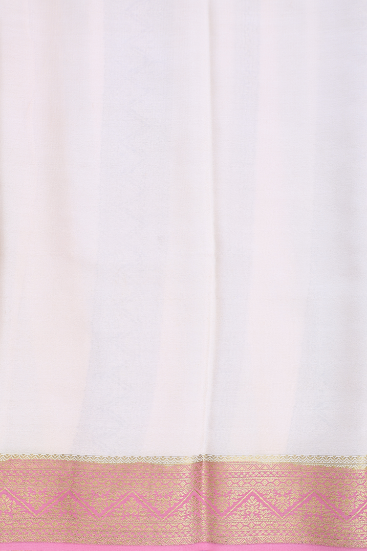 Drape yourself in timeless elegance with this exquisite mysore silk saree in soft pink. Crafted from premium mysore silk, renowned for its lustrous sheen and luxurious feel, this saree features intricate zari buttas that add a touch of opulence to every wear. The delicate gold embellishments dance across the fabric, creating a sophisticated aesthetic perfect for weddings, celebrations, and special occasions. The natural drape and fluid movement of Mysore silk ensure comfort throughout the day, while the refined pink hue complements all skin tones. A timeless investment piece that celebrates traditional craftsmanship with understated grandeur.