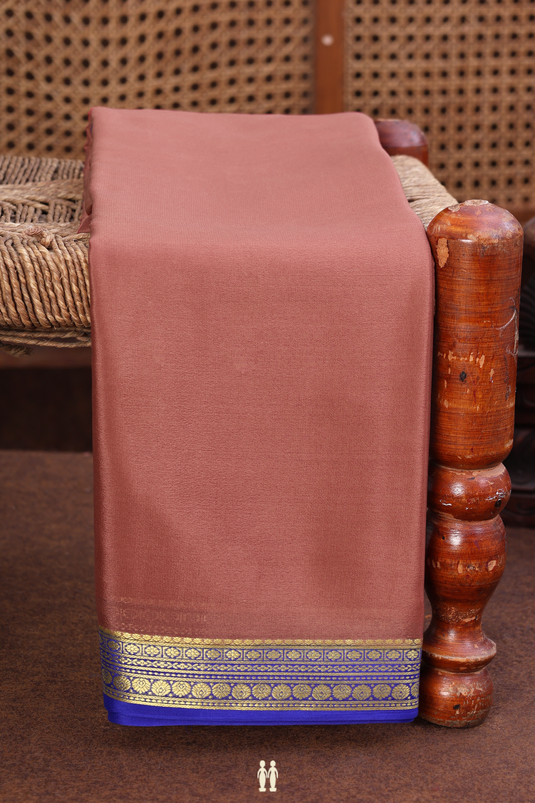 Mysore Silk Saree In Plain Brick Brown With Contrast Border