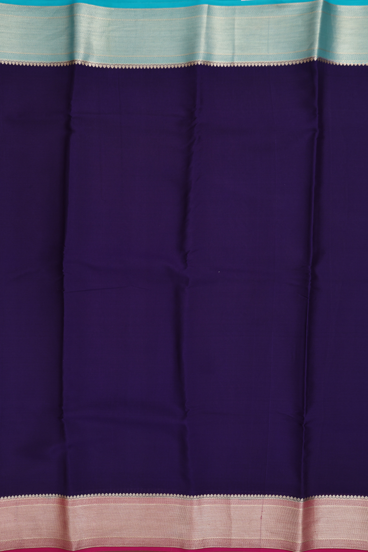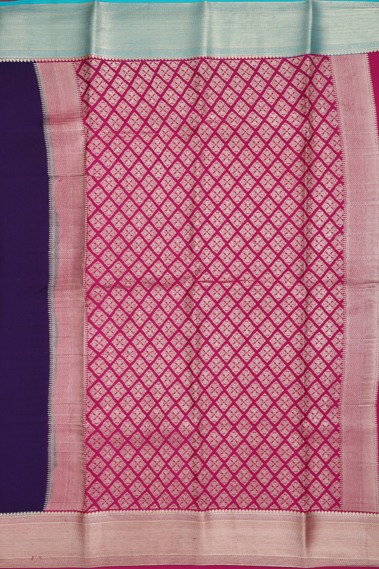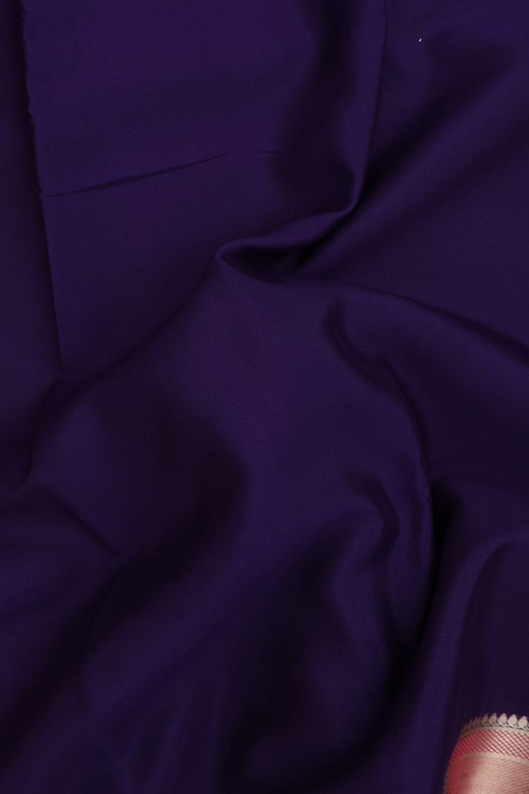 Mysore Silk Saree In Plain Navy Blue With Ganga Jamuna Border