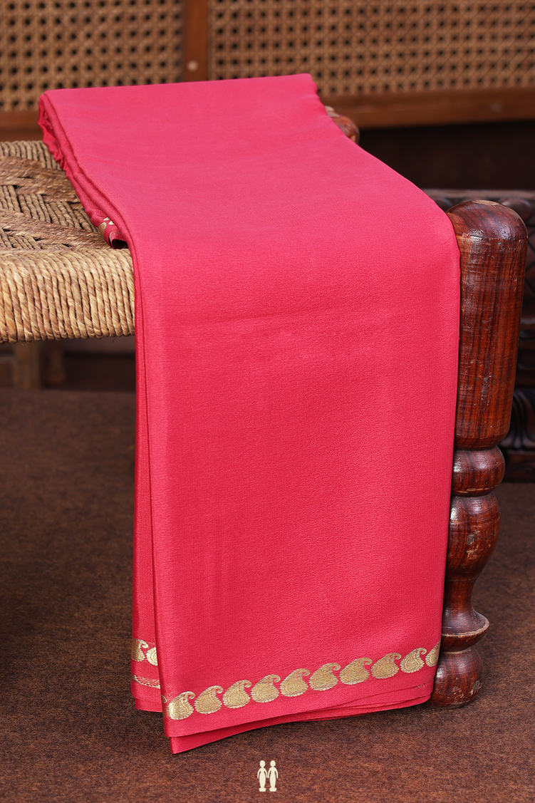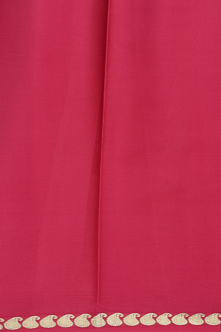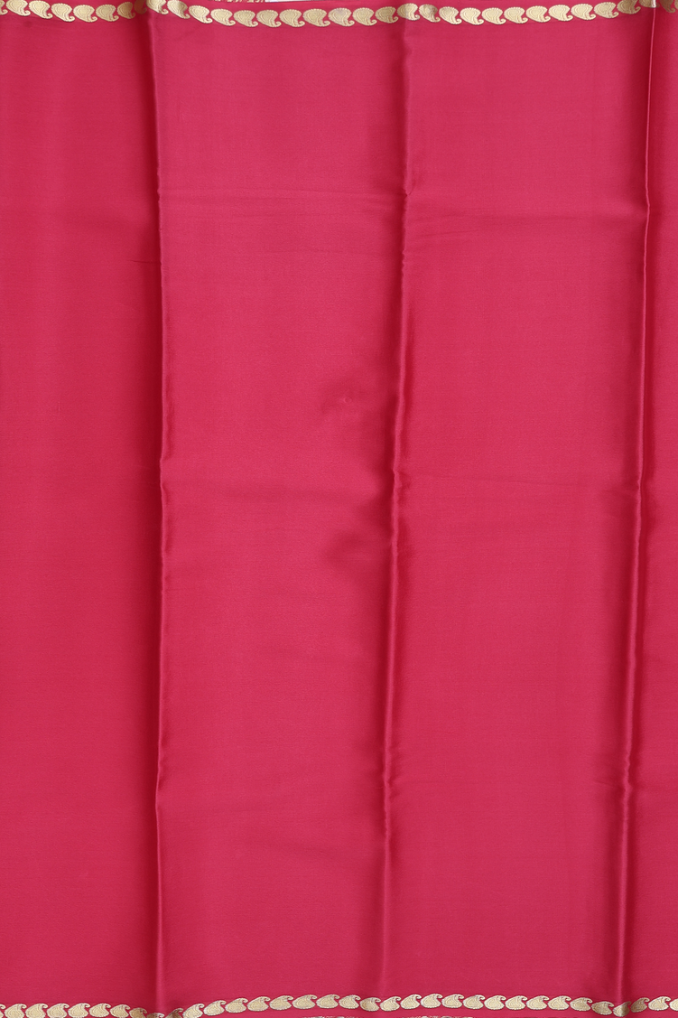Mysore Silk Saree In Plain Punch Pink With Paisley Border