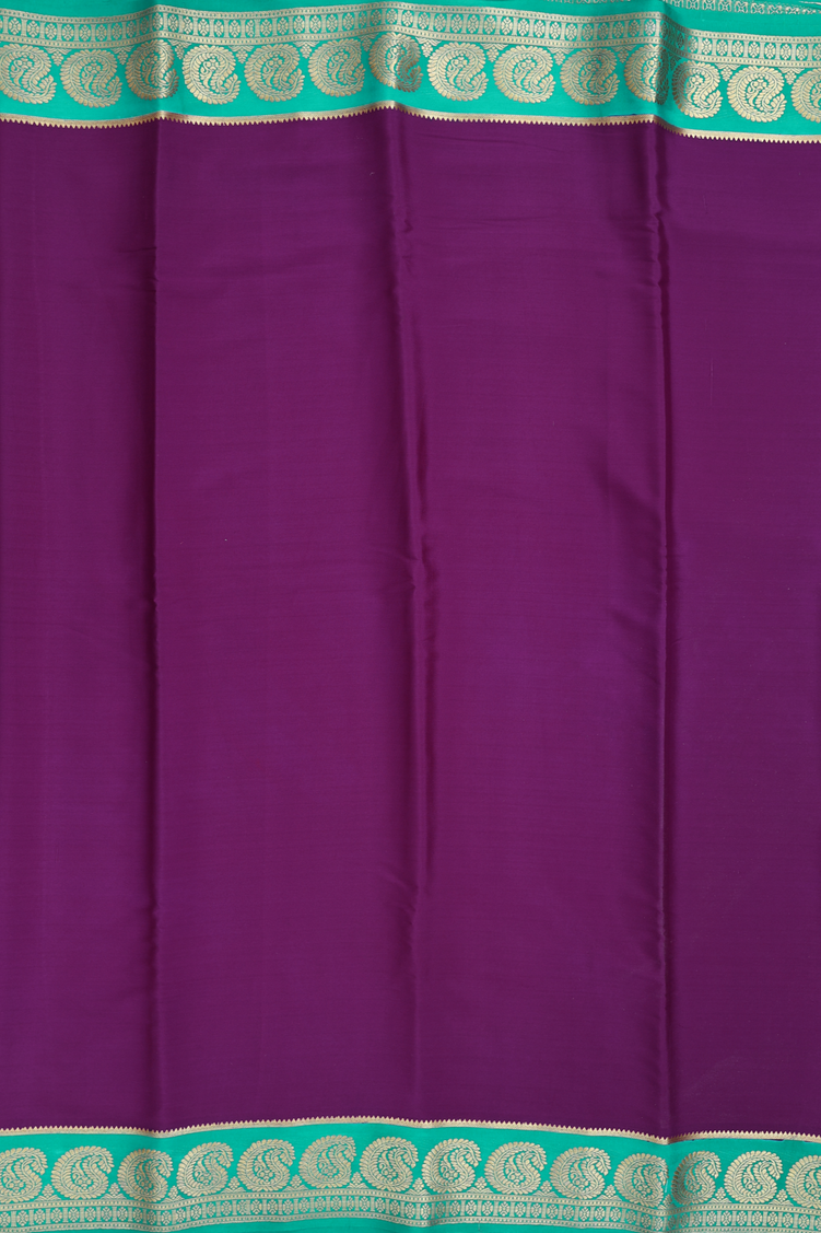 Mysore Silk Saree In Plain Purple With Paisley Border