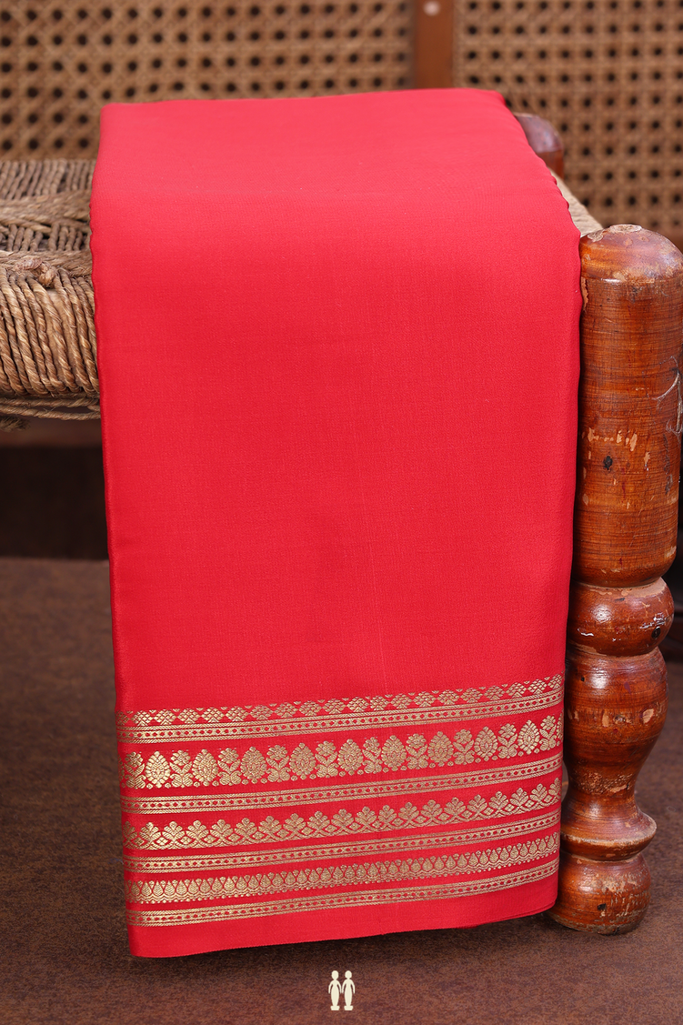 Mysore Silk Saree In Plain Scarlet Red With Zari Border