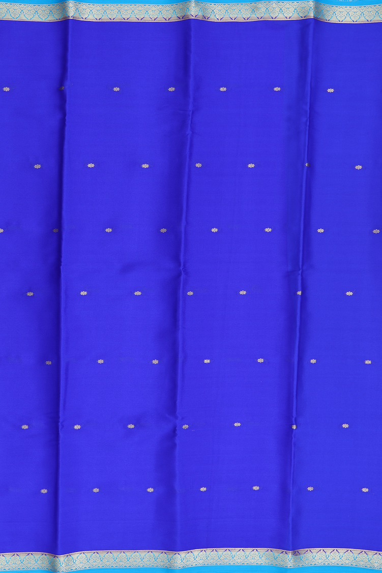 Mysore Silk Saree In Indigo Blue With Floral Buttis