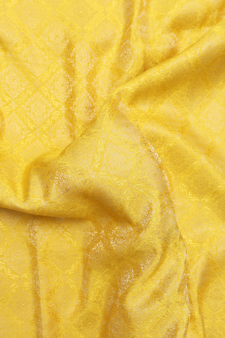 Elevate your traditional wardrobe with this mysore silk saree in a radiant saffron yellow hue. Crafted from luxurious silk, it features an intricate brocade design that adds a refined touch of elegance. Perfect for festive occasions, this saree combines timeless craftsmanship with a rich color palette to make a sophisticated statement.