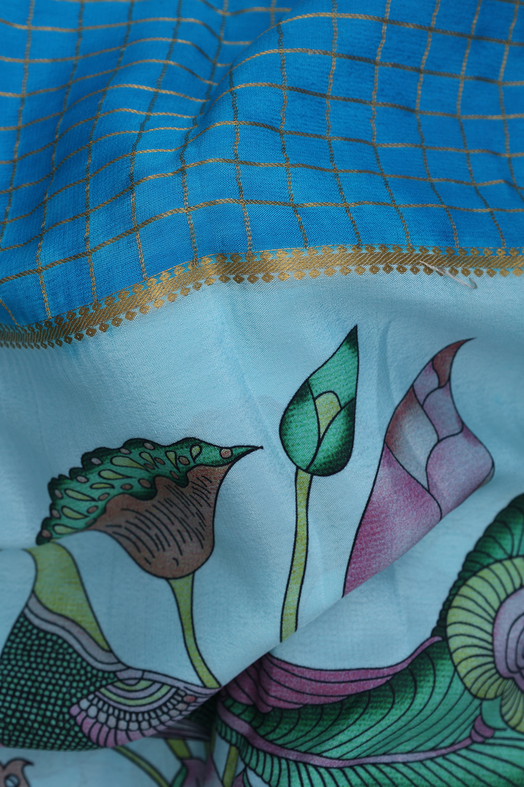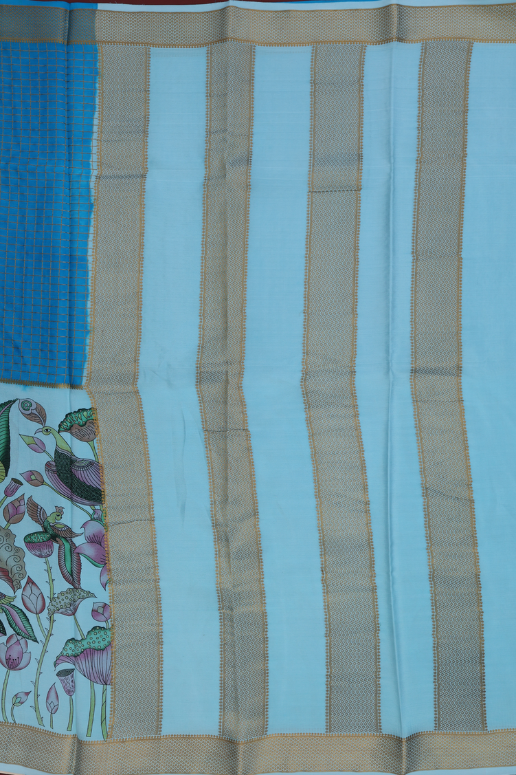 Mysore Silk Saree In Shades Of Blue With Half And Half Design
