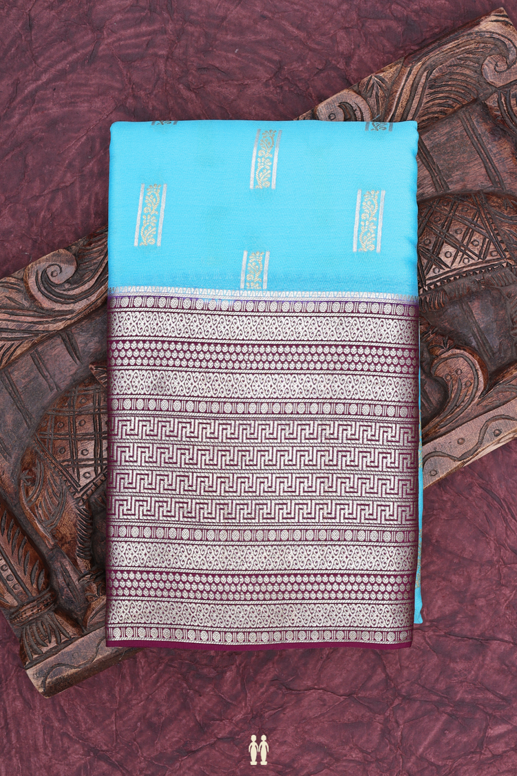 Mysore Silk Saree In Sky Blue With Zari Buttas