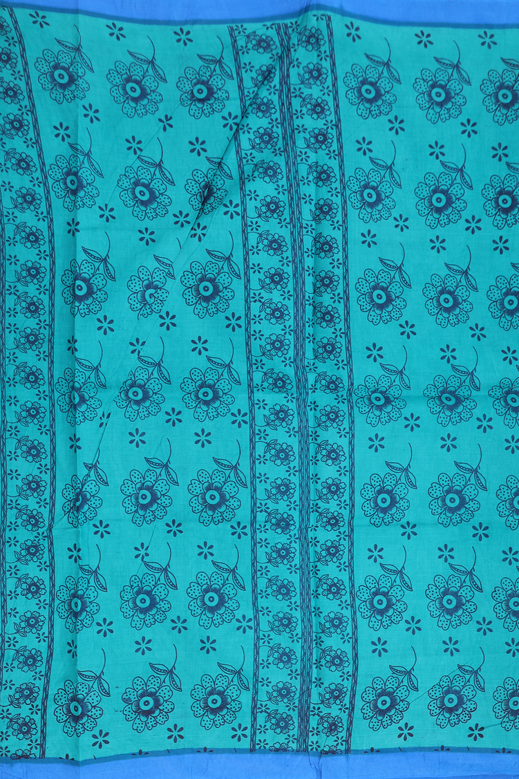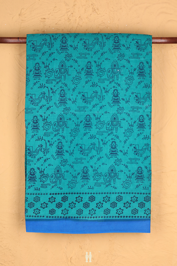 Sungudi Cotton Saree In Teal Green With Printed Design