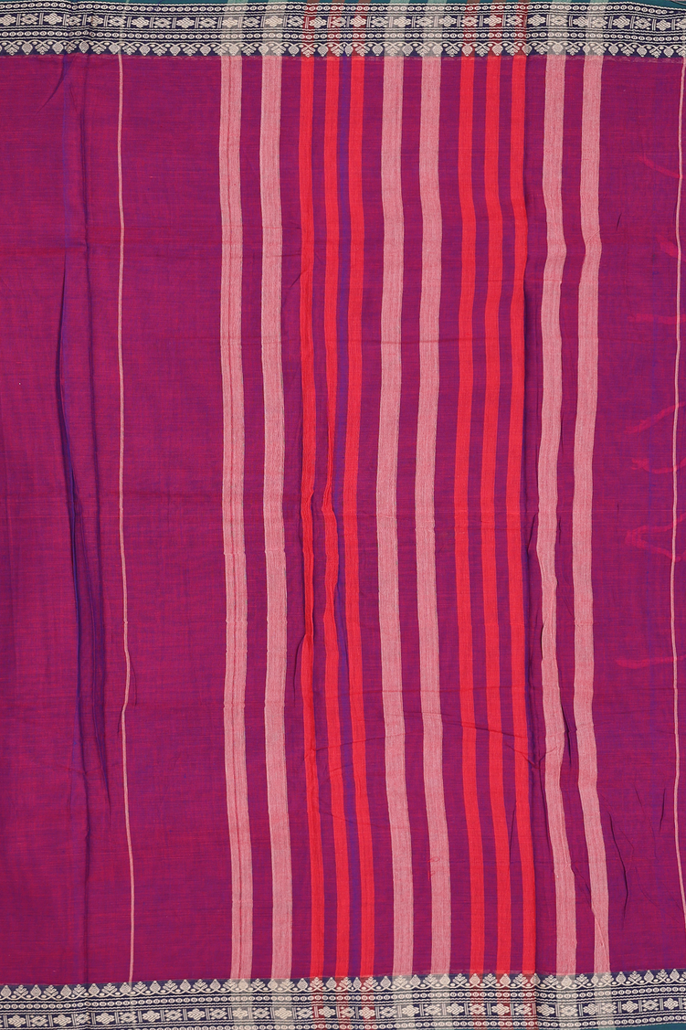 Narayanpet Cotton Saree In Berry Purple With Contrast Border