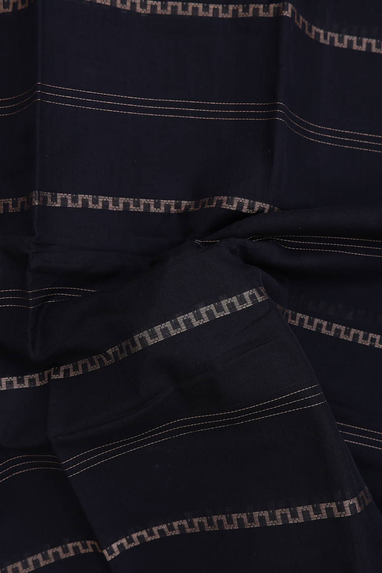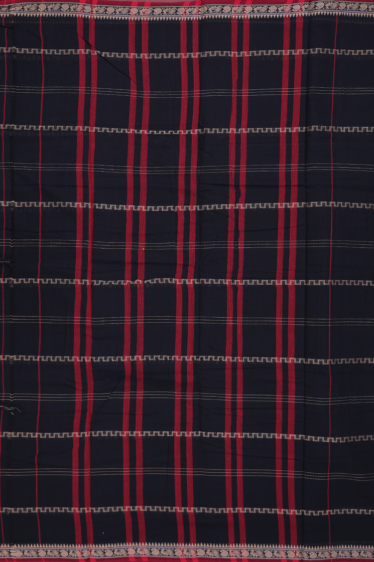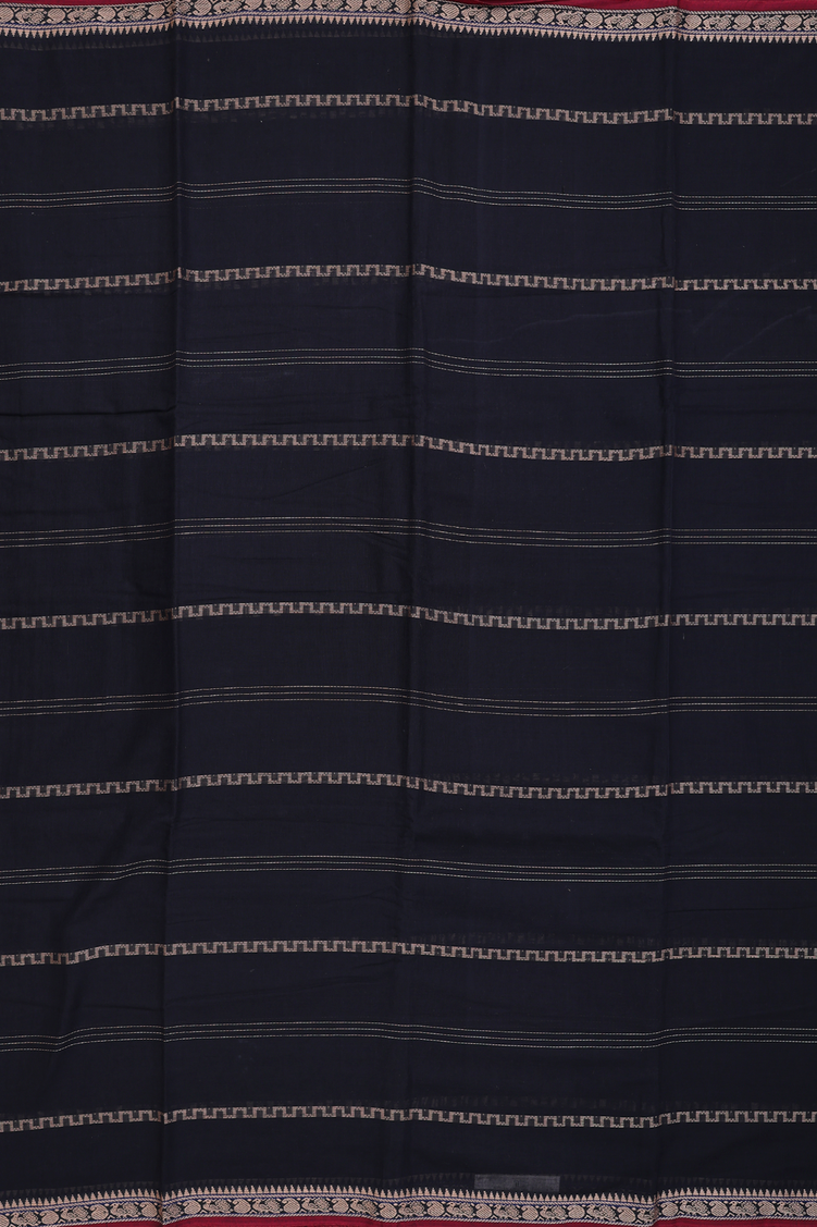Narayanpet Cotton Saree In Black With Stripes Design