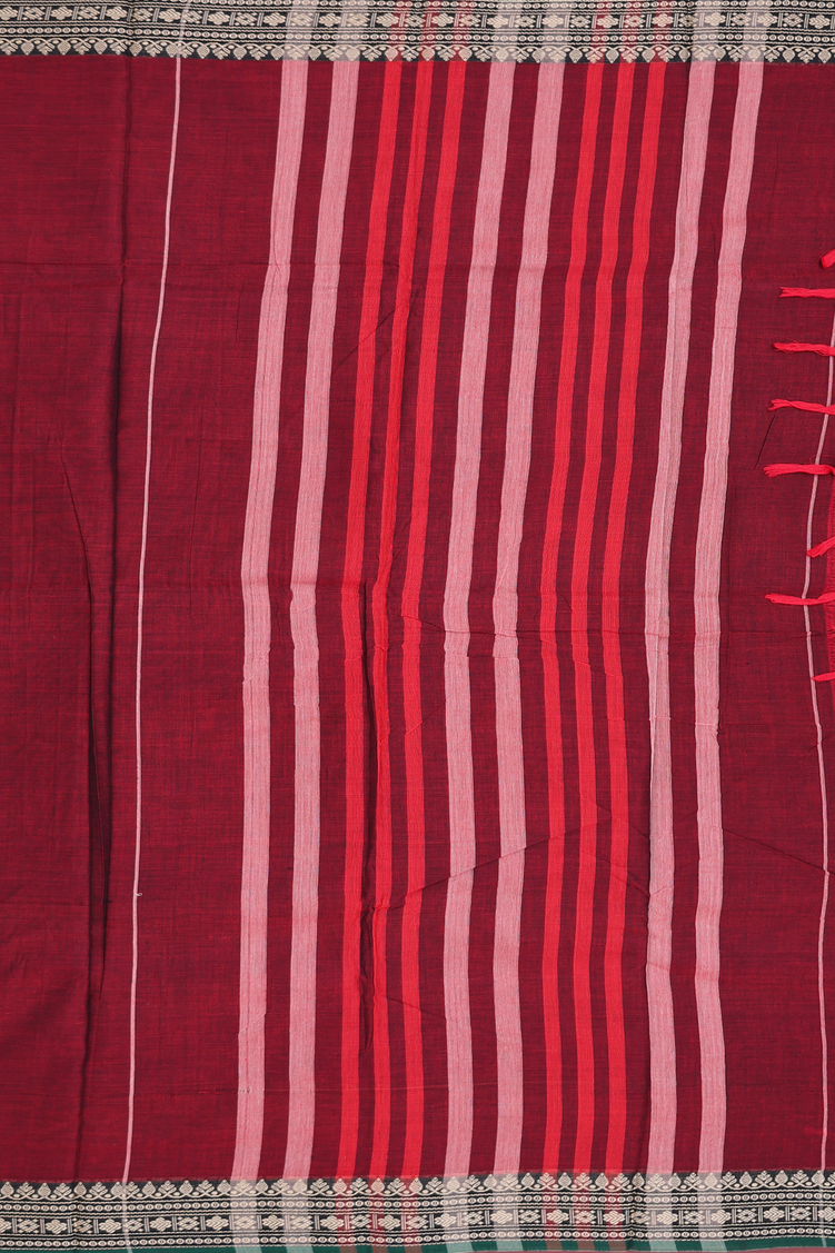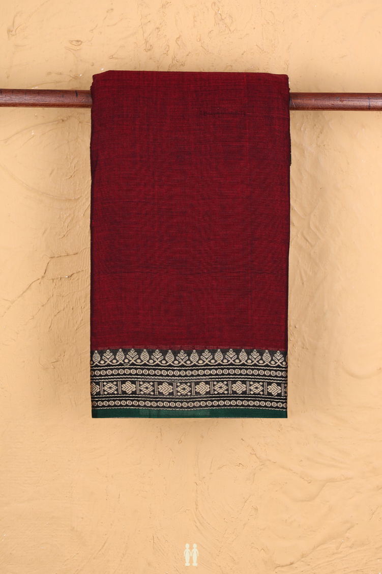 Narayanpet Cotton Saree In Burgundy Red With Contrast Border