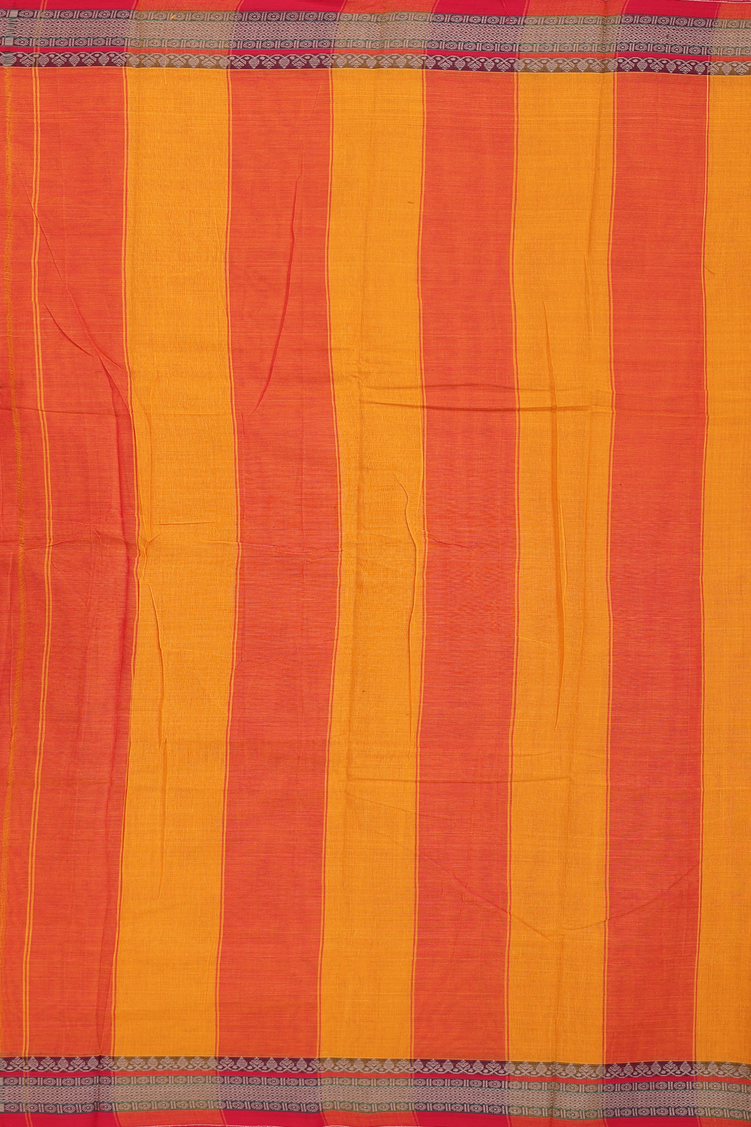 Narayanpet Cotton Saree In Spiced Orange With Contrast Border