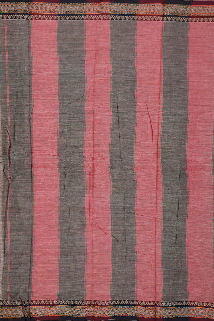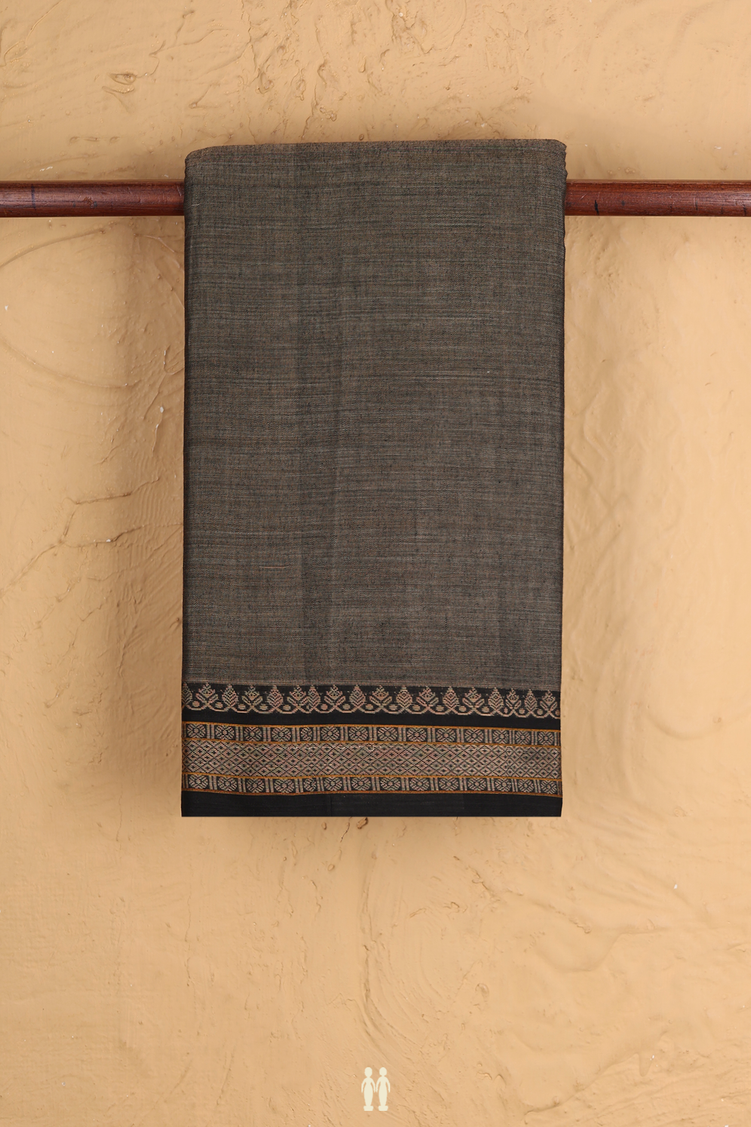 Narayanpet Cotton Saree In Cedar Brown With Contrast Border