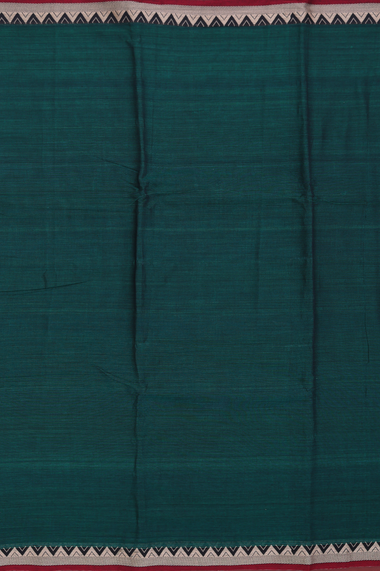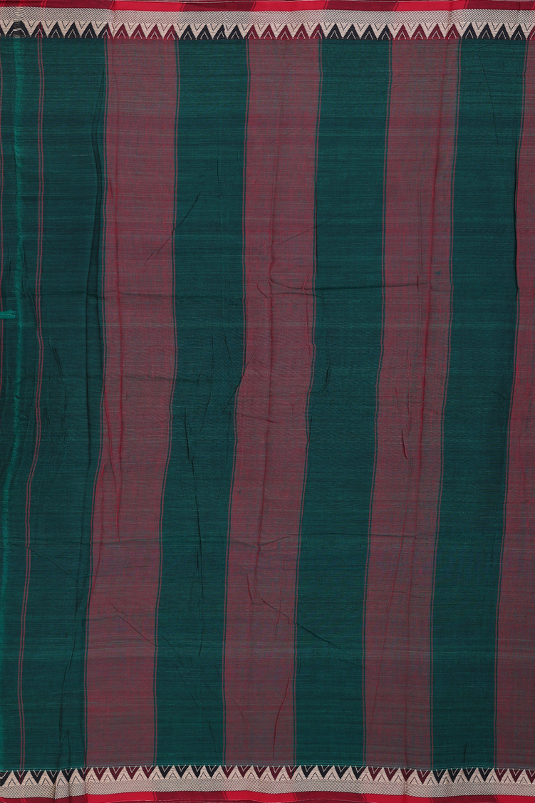 Narayanpet Cotton Saree In Dark Green With Contrast Border
