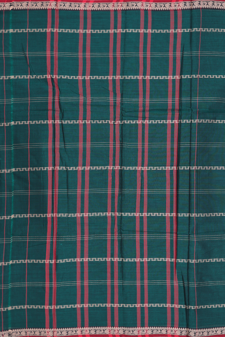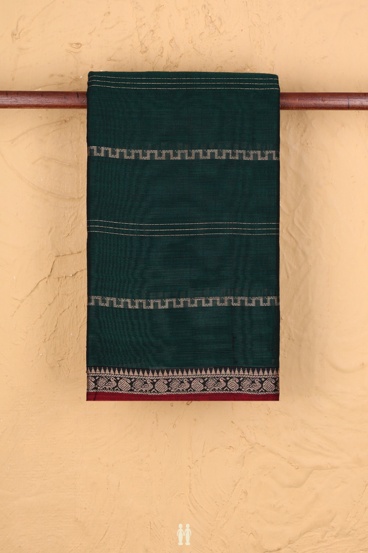 Narayanpet Cotton Saree In Dark Green With Stripes Design