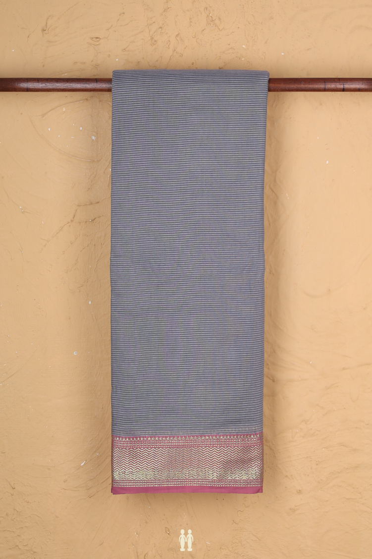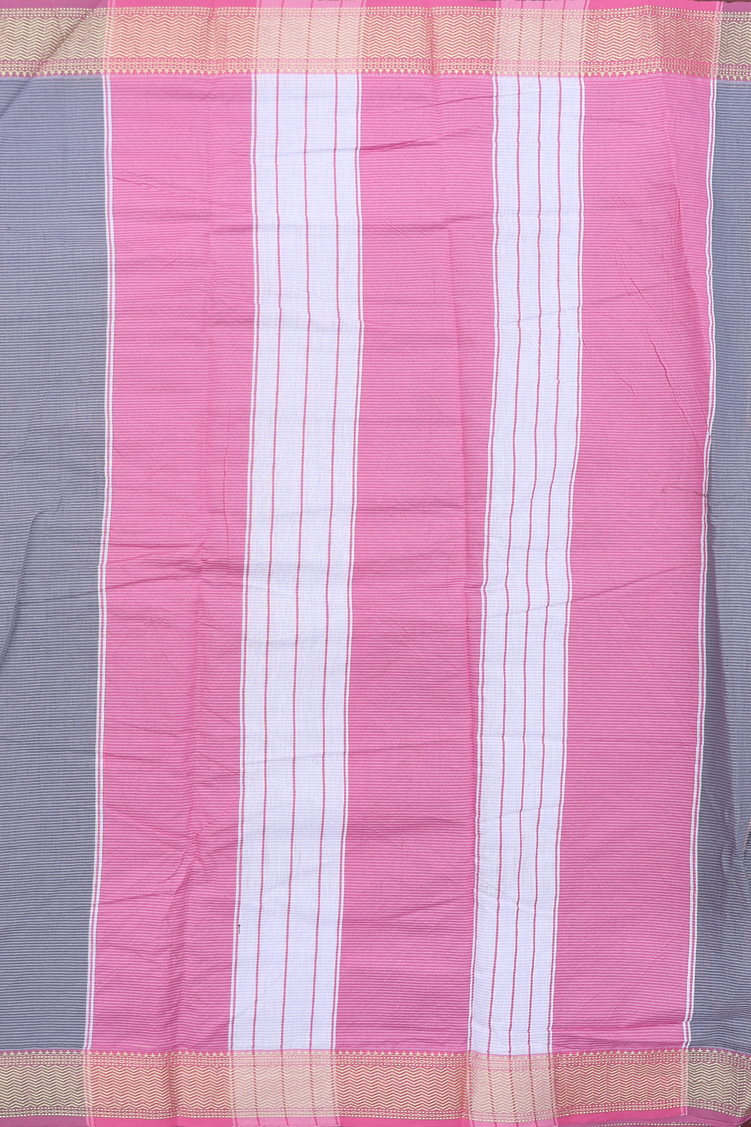 Narayanpet Cotton Saree In Grey With Stripes Design