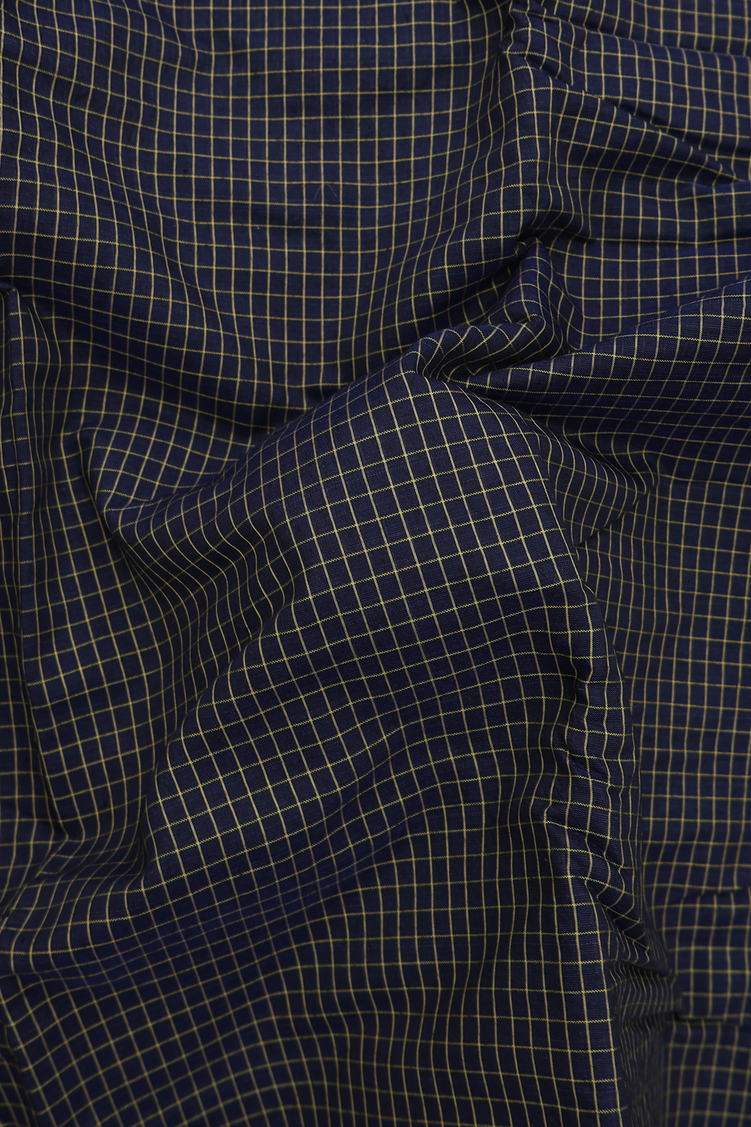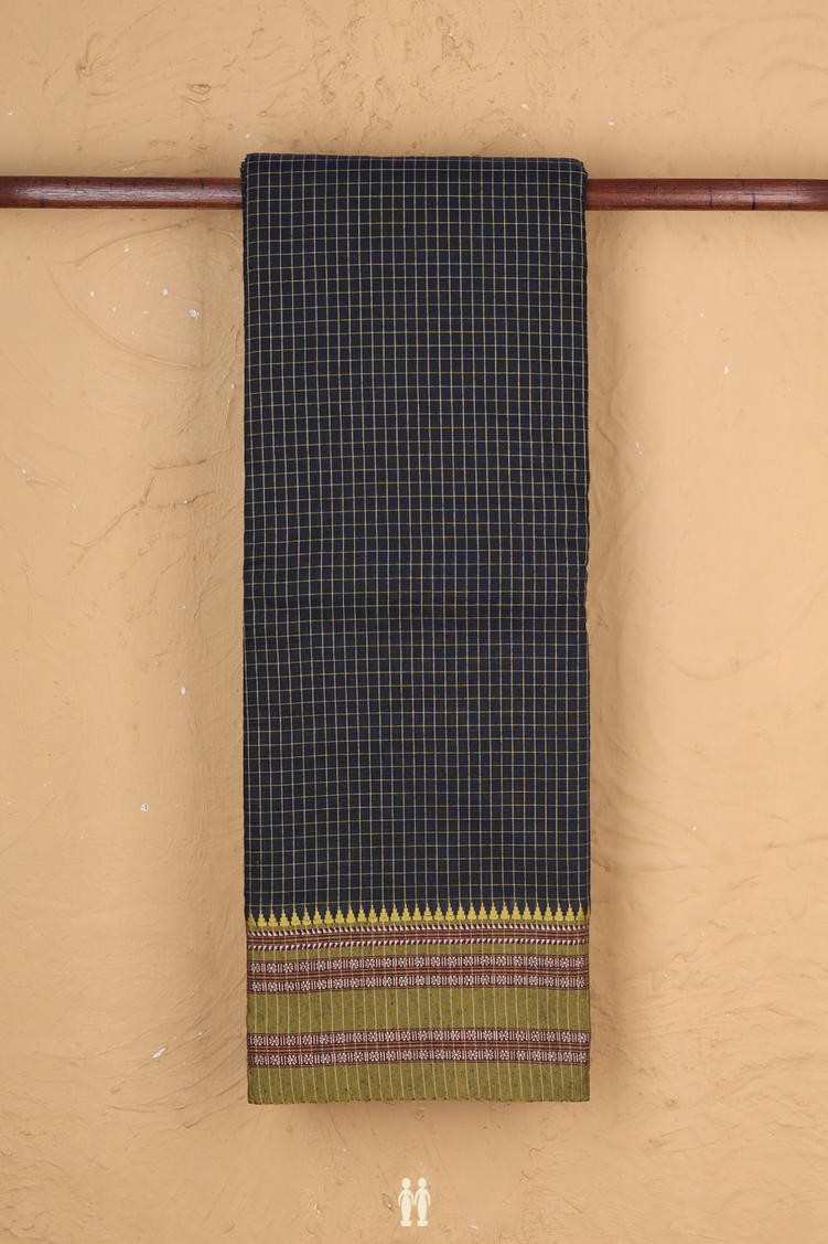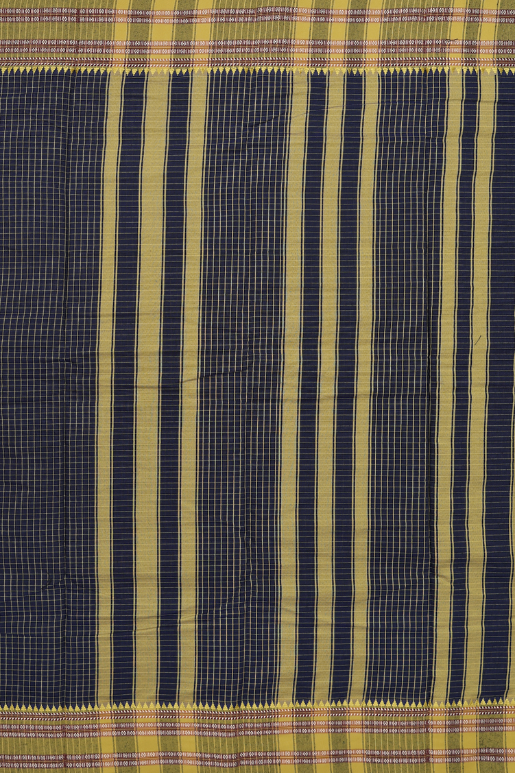 Narayanpet Cotton Saree In Navy Blue With Checks Design