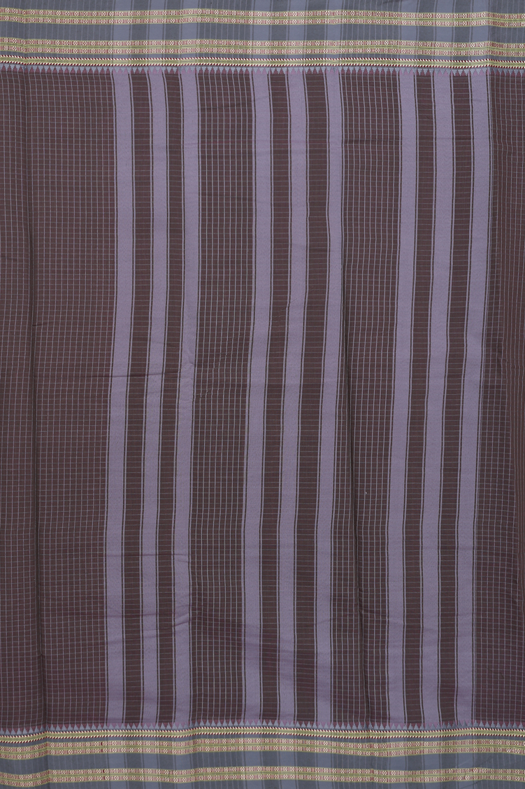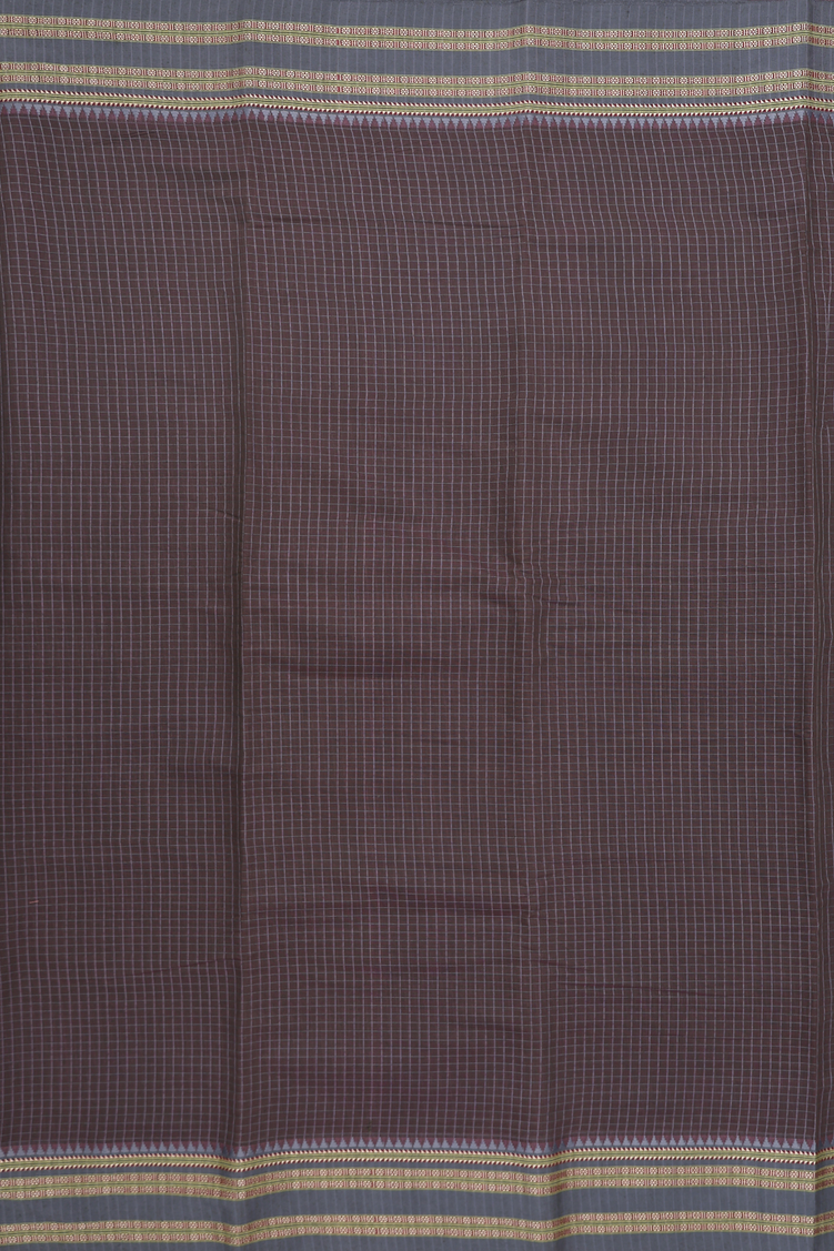 Narayanpet Cotton Saree In Oxford Brown With Checks Design