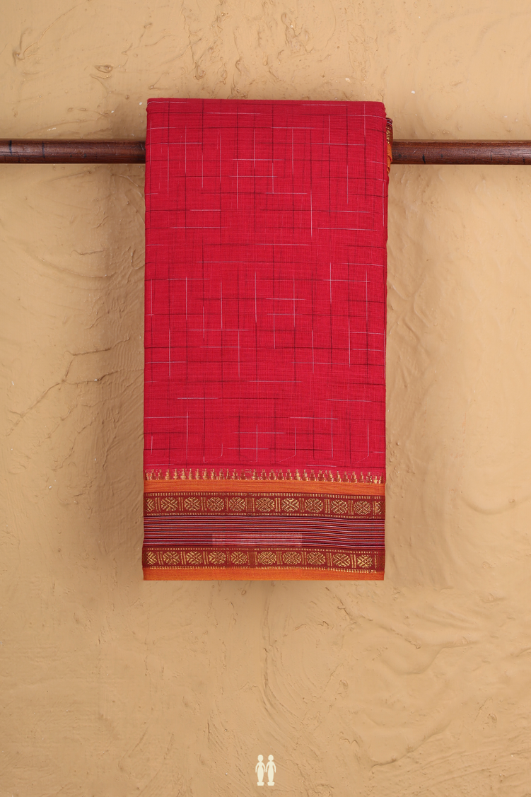 Narayanpet Cotton Saree In Crimson Red With Checks Design
