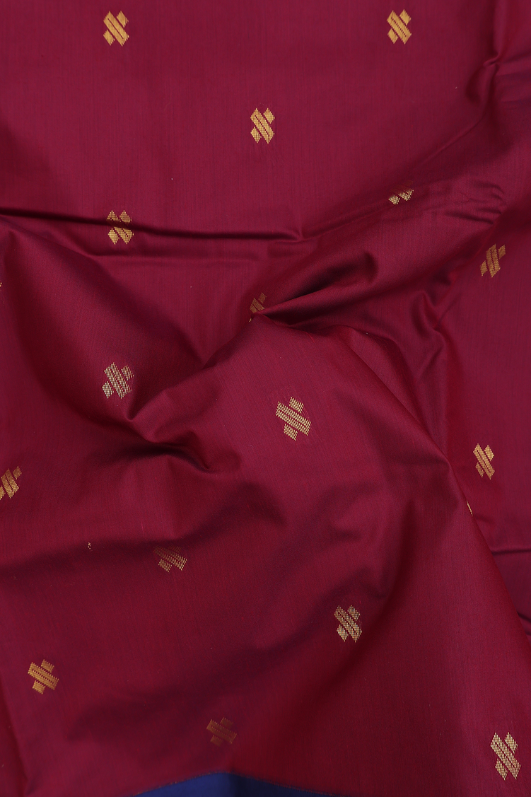 Drape yourself in timeless elegance with this exquisite nine-yard apoorva cotton saree. The rich burgundy red fabric provides a luxurious canvas, while delicate zari buttas add refined sparkle throughout. Crafted from premium cotton, this saree offers breathable comfort without compromising on grandeur. Perfect for festive occasions, celebrations, or when you desire an understated yet striking presence. The traditional nine-yard length ensures versatile draping options, allowing you to express your personal style. An investment piece that seamlessly blends heritage craftsmanship with contemporary sophistication.