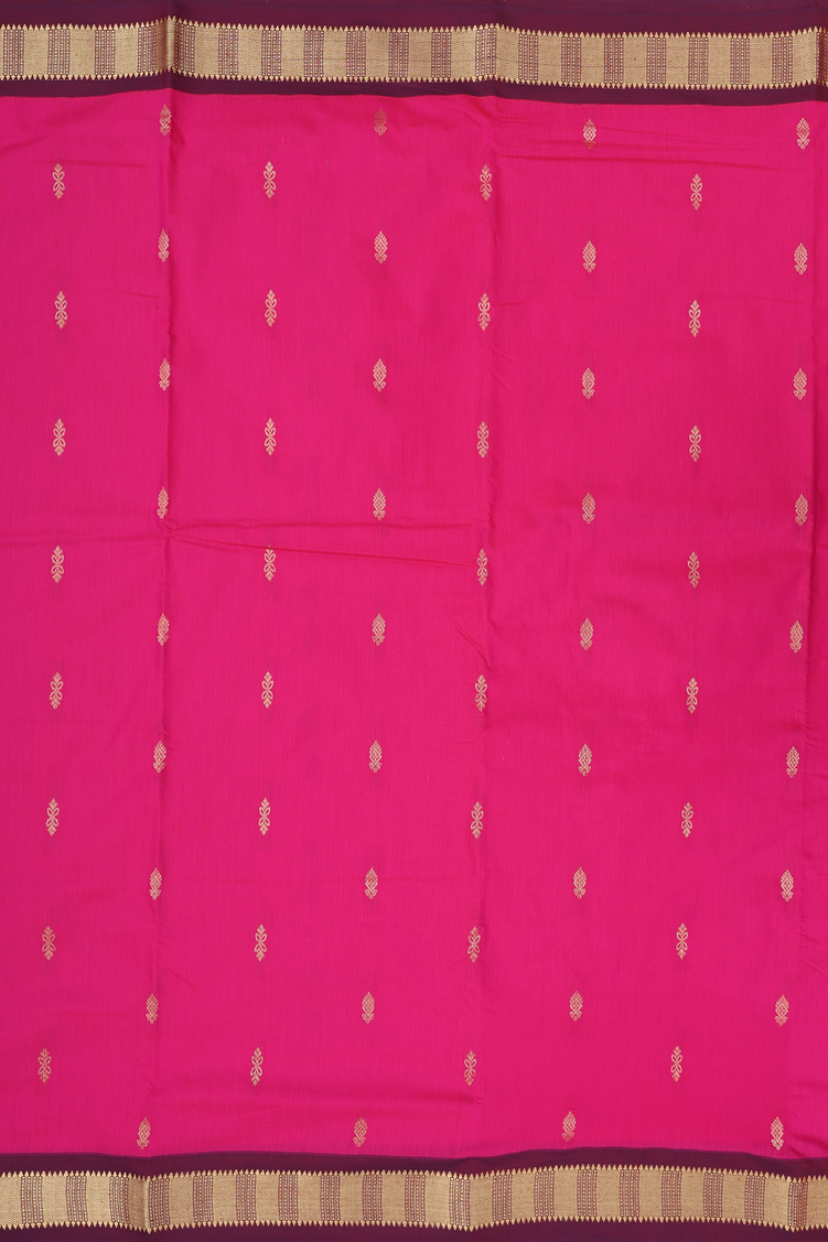Nine Yards Apoorva Cotton Saree In Rani Pink With Zari Buttas