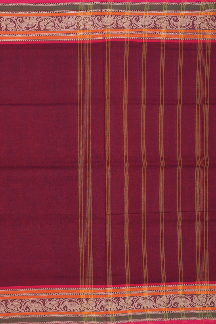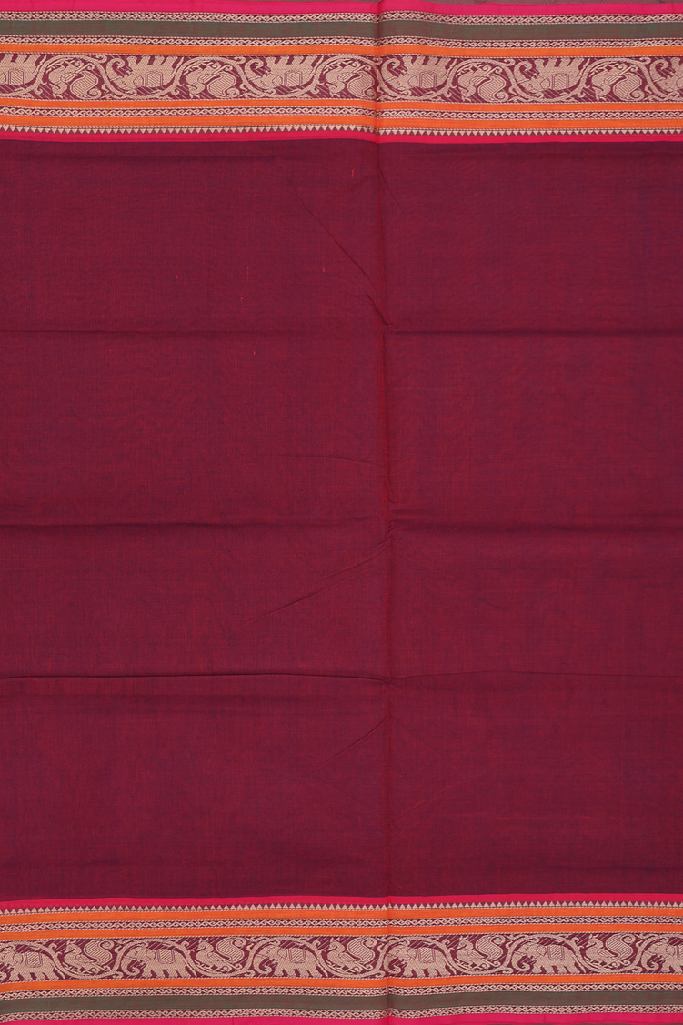 Nine Yards Cotton Saree Burgundy Red With Threadwork Border