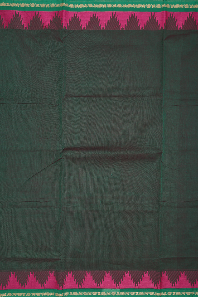 Nine Yards Cotton Saree In Dark Green With Threadwork Border